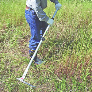 鎌よりも道具自体に重みがあるため、多少の力は必要になりますが、立った姿勢での作業を行えるため少ない動作ですみます。