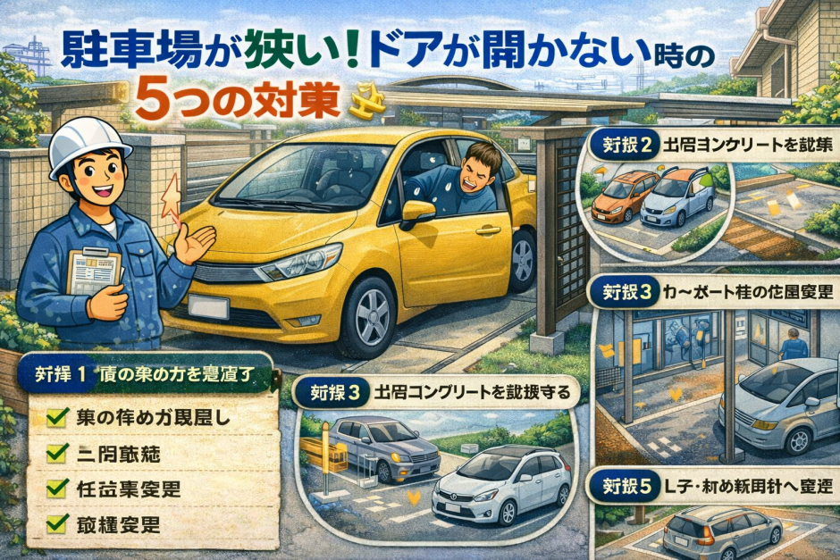 駐車場が狭い!ドアが開かない時の5つの対策【外構で解決できる】